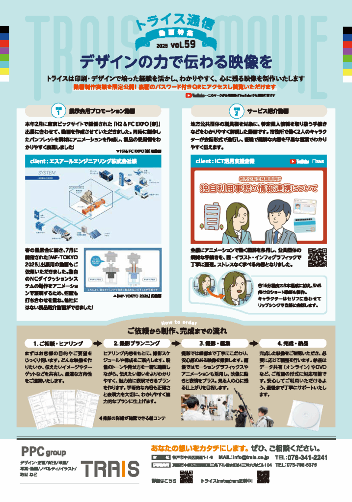 トライス通信vol59を発行しました。 2025年11月11日 最終更新日時 : 2025年11月11日 ad_tこのたび、トライス通信vol.59 を発行いたしました。バックナンバー一覧はこちらからご覧いただけます。